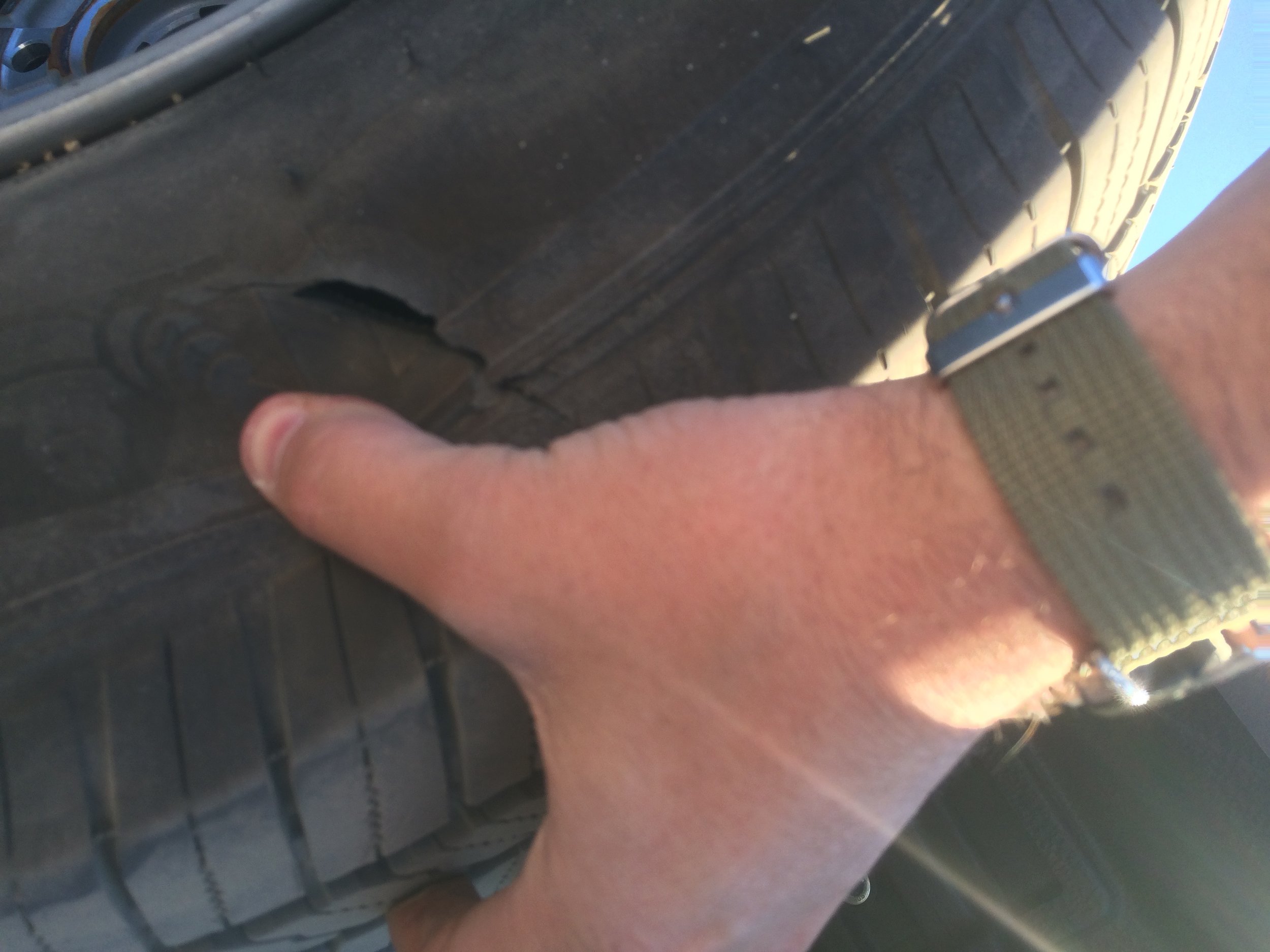 Communication between the pilot and the driver must be extremely good to keep similar speeds and keep the aircraft from getting too far ahead or too far behind. Pacing the aircraft can be a distraction to the driver. As if to prove this point, we blew a tire during the operation when the driver was unable to avoid debris in the road. This would have been avoided with better autopilot and and a designated visual observer in the vehicle, allowing the driver to focus more of his attention on the road, and not on pacing the aircraft.