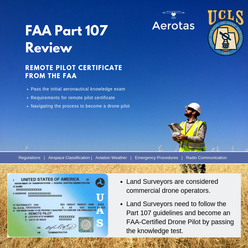 Aerotas CEO Logan Campbell presented a full-day workshop on how to prepare for the FAA Part 107 Unmanned Aircraft General exam. This link will give you access to the video of the complete workshop and all materials referenced in the session.