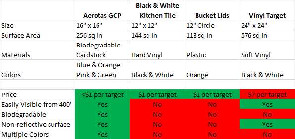Throughout all of our work, Aerotas focuses on continuous, incremental improvements, and this is true with our GCPs as well. The first test versions of our GCPs were printed on standard 8.5x11 printer paper, quickly followed by taping squares of construction paper together to test the right sizes. Every batch of GCPs that we have produced has been improved from the prior batch, and this is a process we intend to keep using so that we are always getting better.